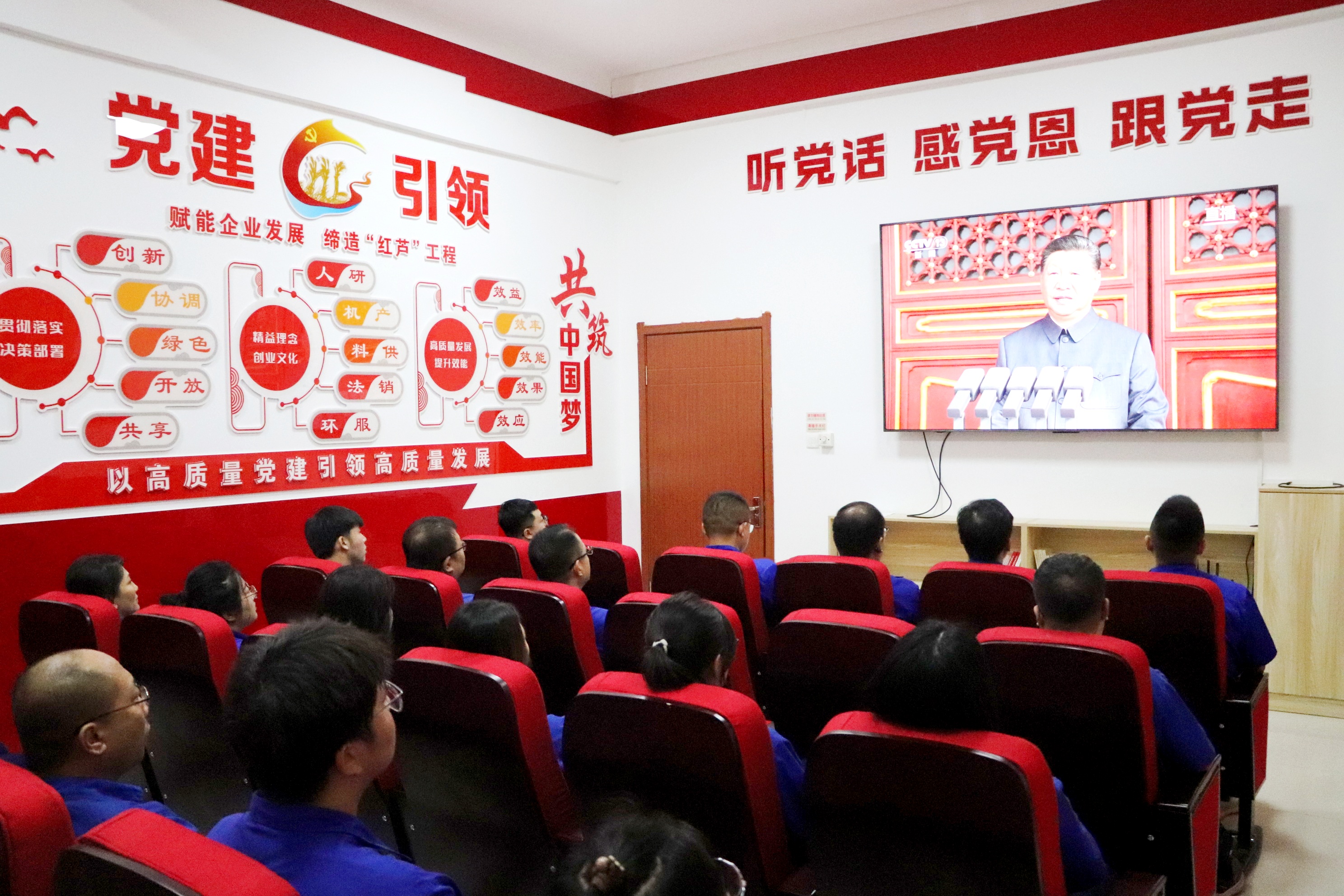 天安門(mén)廣場(chǎng)上受閱部隊(duì)氣勢(shì)如虹,廠(chǎng)區(qū)電子屏幕前職工神情專(zhuān)注,盤(pán)錦合力以一場(chǎng)精心組織的觀(guān)看活動(dòng),...